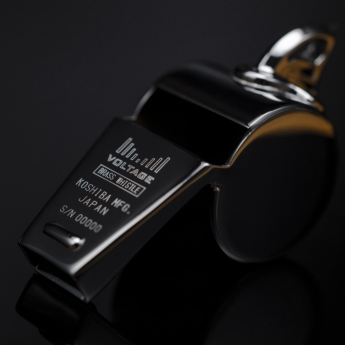 ボリュームのあるストラップを採用しホイッスルに重量感を持たせ、吹込み口の直線上に配置することで程よい抵抗感を生み出します。